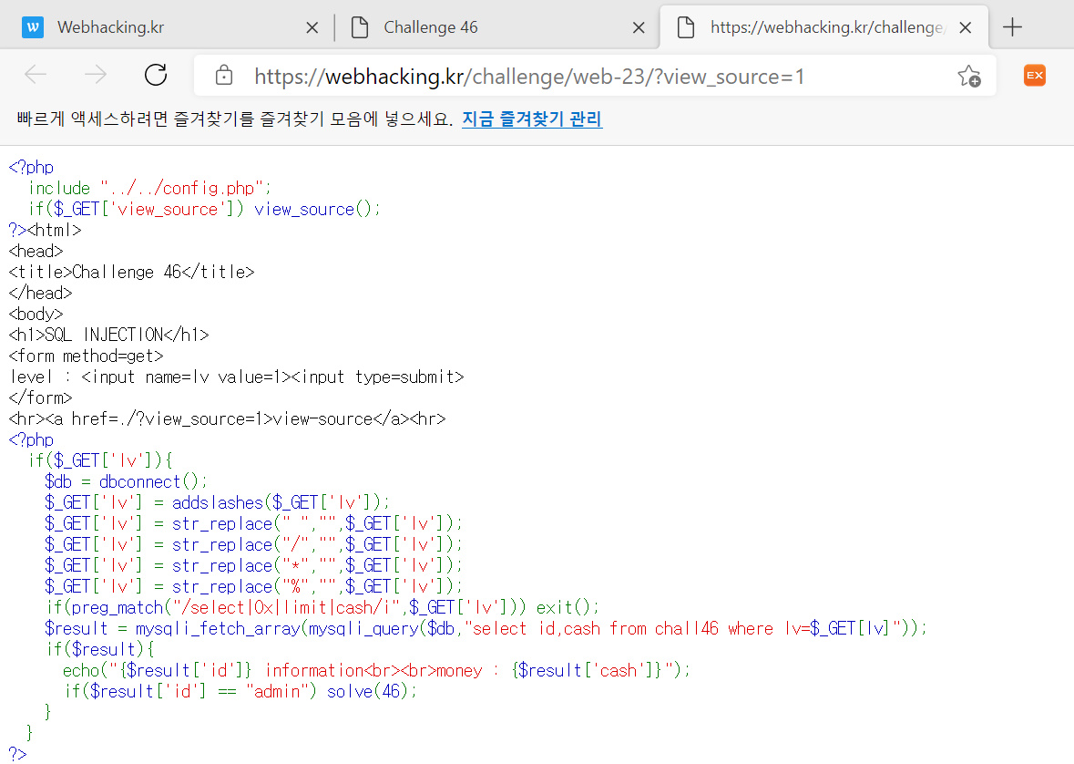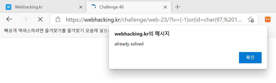 따라서 쿼리를 lv = -1 or id = 'admin' 식으로 쿼리를 완성하면 문제를 해결할 수 있습니다.